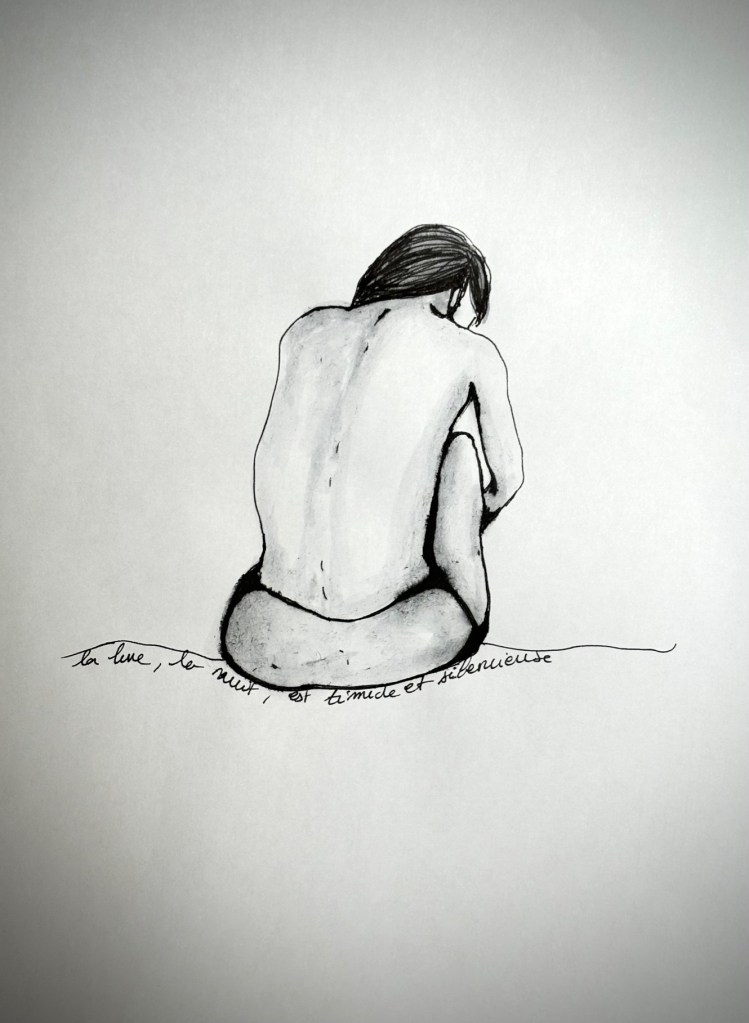 Soul night Publié parambreklein12 août 202410 août 2025Publié dansArt & Energies, Chroniques de l'âme, Dessins, Mots Silence immobile dans le ciel noir acier une étoile dans l’oeil brille les lèvres sont gercées lorsqu’elle rit, elle fait saigner les dents et j’ai cherché partout ta bouche comme on suffoque de ne pouvoir respirer Un jour ange un autre démon Cabanel J’aime chargement… Articles similaires